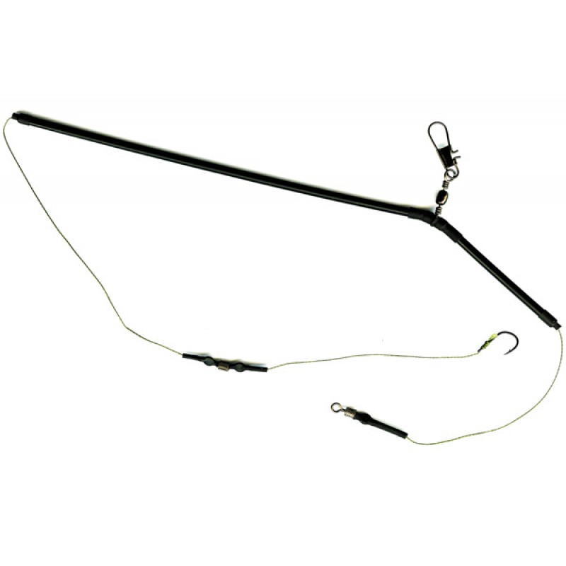 Оснастка с трубочкой-противозакручивателем имеет отличием то, что при ее применении используют различные трубки, препятствующие закручиванию. При этом грузик или кормушка вертлюжкового типа прикрепляются сбоку. Трубки чаще всего в этом случае берут согнутые, которые составляются из двух частей разной длины. В месте изгиба прикрепляют грузик или кормушку.