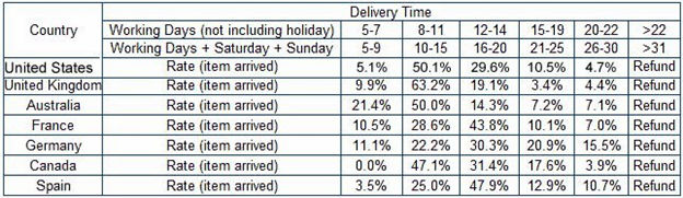 - Время доставки считается после отправки посылки, а не времени размещения заказа.