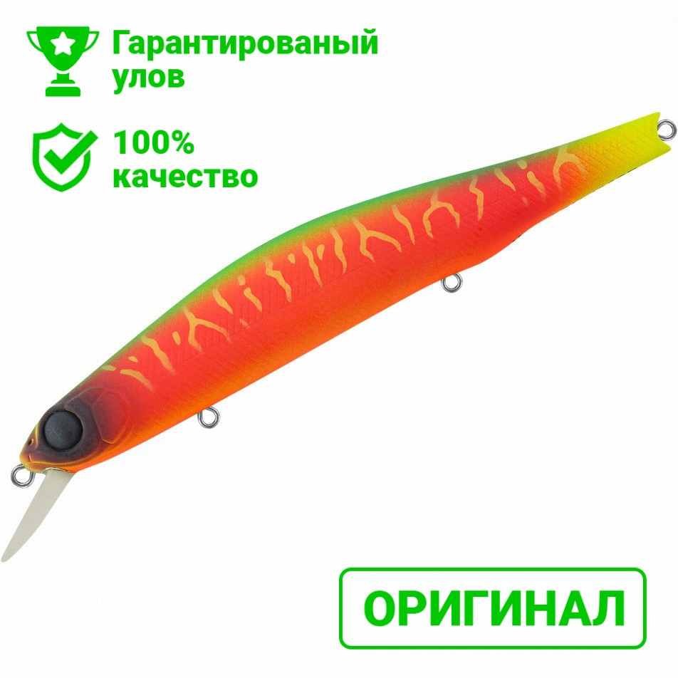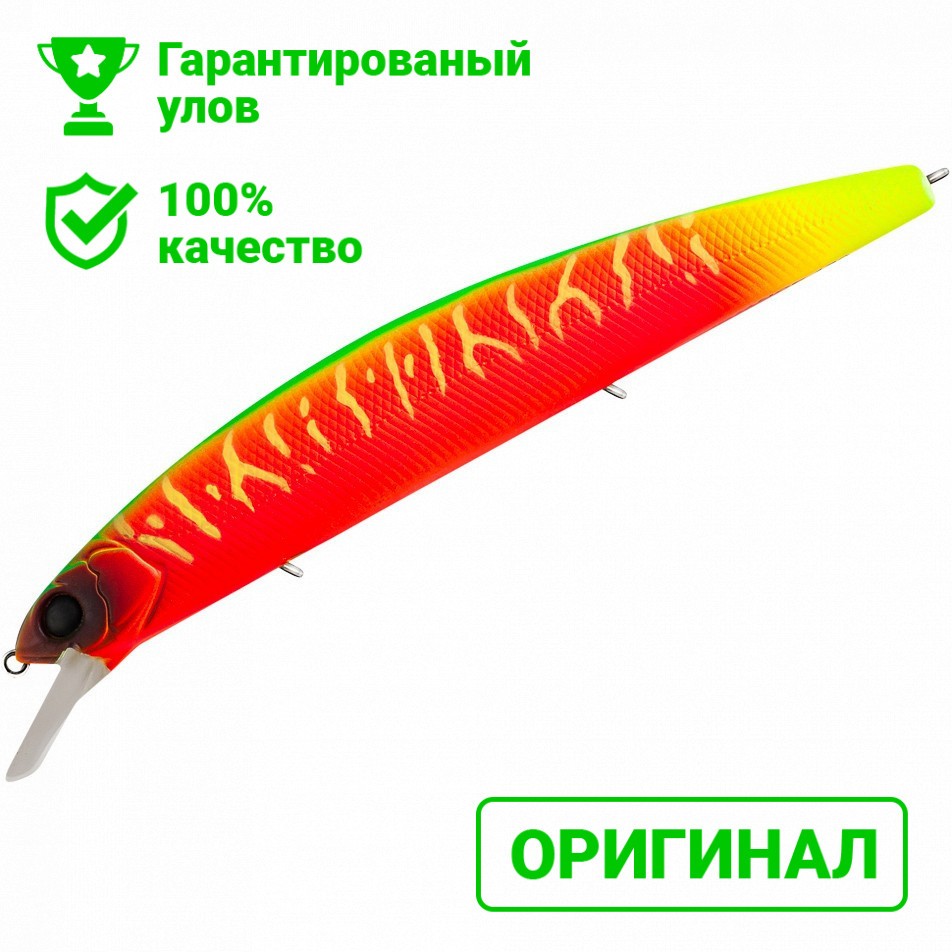 TsuYoki Gera 130SP – один из самых крупных воблеров в этом рейтинге, позиционируемый в качестве «инструмента» для поиска активной рыбы на масштабных локациях. Дальнобойность минноу на твердую пятерку. Летит он лучше аналогов из ТОП-а, но стоит учитывать, что из-за веса и размерности снасть должна быть мощная.