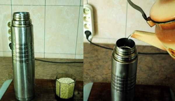 - Требуется 2 ст. л. чистой очищенной крупы, которую надо насыпать в термос.