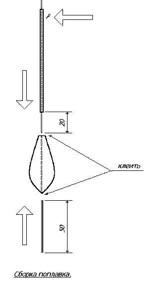 Размеры поплавка из пенопласта не привожу: для каждого конкретного случая рыболов определит их сам.