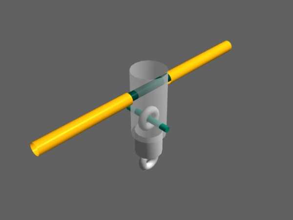 В заготовке из плотного пенопласта квадратного сечения шилом пробил отверстие диаметром 1,5-2 мм, которое затем рассверлил с таким расчетом, чтобы в него можно было плотно посадить стержень шариковой ручки. Затем вручную придал заготовке нужную форму.