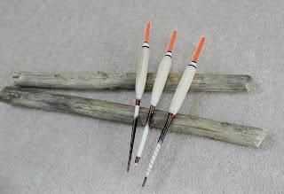 Поплавки из пенопласта. Один из особо чутких поплавков из пенопласта можно сделать самому. Из пробки или пенопласта вырезают шарик поперечником 7 мм, красят его снизу в голубой цвет, сверху — в оранжевый, по центру сверлят отверстие и вставляют стержень из бука поперечником 1,5 мм и длиной 70 мм. Низ стержня оснащают «восьмеркой» из узенькой проволоки для крепления лески. Верхнюю часть стержня красят чередующимися поперечными полосами 2—3 ярких цветов.