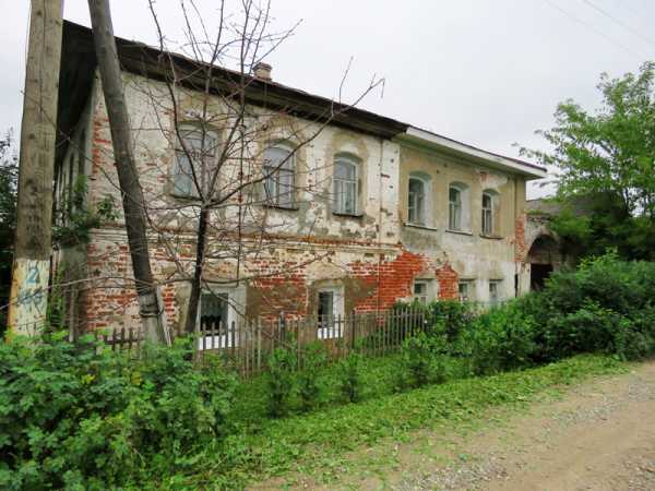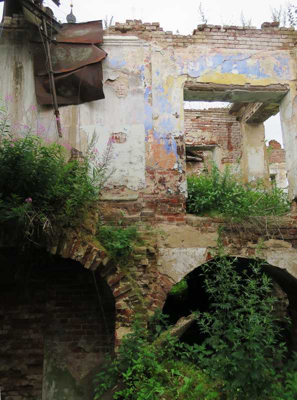 Во многих домах сохранились интерьеры — арочные своды, крутые изогнутые лестницы, изразцовые печи, лепнина… Странный гибрид барских усадеб и русских палат. Большая подборка фотографий есть здесь, но как проникнуть внутрь, там не сказано — а стало быть, только в частном порядке. Может быть, я бы нашёл какие-то вариаты при тщательной подготовке, но как уже говорилось в прошлой части, мы сюда поехали экспромтом. Поэтому и попасть удалось лишь в здание училища (1846) в начале Ленинской улицы: