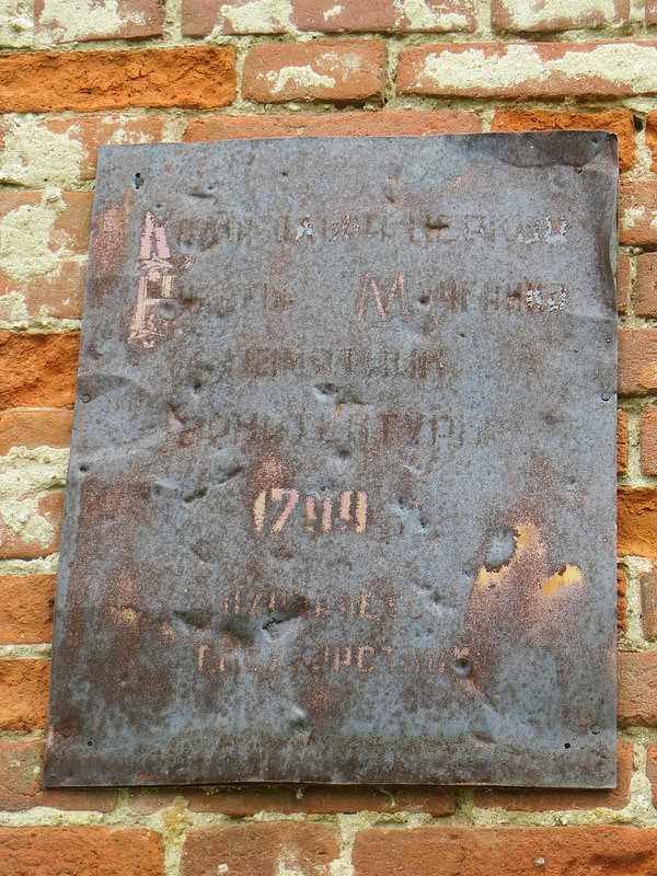 6. Табличка, на которой написано… Что-то написано, неразборчиво, чтобы было понятно, что табличка тоже древняя и заслуженная. Я смог разобрать только год — 1799.