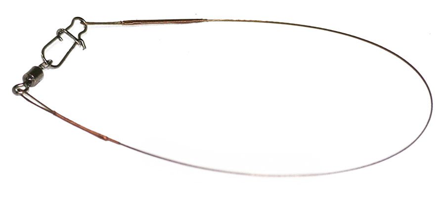 В отличие от поводка с застежкой, здесь сегментом крепления выступает скрутка. Такая защита лески от зубов хищной рыбы изготавливается из гитарных струн любого диаметра, начиная от самых тонких первых и заканчивая достаточно толстыми без оплетки. Более толстые, применяются в джерковой или троллинговой ловле. Иными словами, когда идут максимальные нагрузки и есть шанс поймать реально крупную рыбу.
