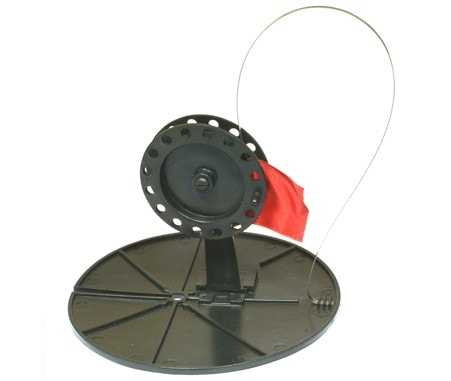 - Живец должен быть в 30 -50 см над дном, поэтому если глубиномер отдельный промеряем им глубину лунки и отмеряем нужную длину лески на жерлице. Если в качестве глубиномера лишь грузик с прищепкой, крепим его к грузу жерлицы и опускаем на дно. Затем поднимаем его на нужную высоту сделав соответствующее число оборотов катушки, а катушку зажимаем флажком;