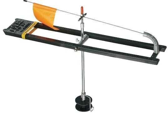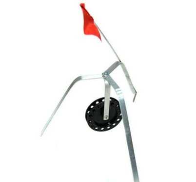 Дальше — выбор формы ставки. На водоеме можно встретить большое разнообразие жерлиц: тут тебе и «тарелки», устанавливаемые на лунку, и простые стойки, и стойки на подставке, и треноги. У каждого вида множество плюсов и минусов. Так, ставка в форме тарелки, устанавливаемой на лунку, хороша по первому льду, когда на водоеме нет снега, быстро разбирается и собирается, занимая мало места. Однако при широкой расстановке эта ставка становится малозаметной, поклевку можно пропустить. Во время сильного снегопада или метели такие ставки быстро засыпает снегом и при сборке снастей пары-тройки штук можно недосчитаться. При ловле на голом льду в сильный ветер забавно наблюдать за рыбаками, в буквальном смысле гоняющимися за ставками — порывом ветра ставка встает на ребро и, словно колобок из сказки, убегает прочь от рыболова. У остальных ставок также существуют как положительные, так и отрицательные стороны.