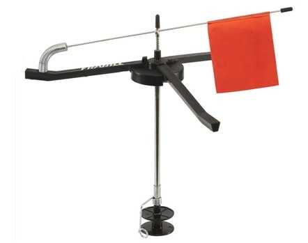 Над лункой она устанавливается в отверстие, чуть большее, чем поперечный размер самой трубки (фото 1). Это отверстие во льду я делаю компактным буравчиком рядом с лункой. Такая высота жерлицы позволяет засыпать лунку большим количеством снега, что очень важно при ловле в существенный мороз. В сработавшем же состоянии, когда «горит» флажок