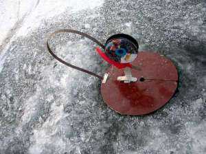 Я слышал про много способов установки ставок в сильный мороз. Кто-то ждет, пока схватится корочка, и потом присыпает снегом. Кто-то вырезает из фанеры дощечки и ими накрывает лунку. Некоторые вообще льют в лунку подсолнечное масло, мотивируя это тем, что оно не замерзает. На самом деле все гораздо проще. Не нужно ни ожидать, ни совершать дополнительных манипуляций. После того, как ставка установлена, засыпаем лунку сухим снегом. Вначале он намокает и заполняет собой лунку. При дальнейшем засыпании в какой-то момент снег перестает намокать и получается эдакий курганчик высотой практически до катушки, через который проходит леска. Данный способ великолепно справляется с примерзанием лески к лунке. Он был проверен в ночь с 25-градусным морозом. Тогда мы оставили ставки на водоеме на ночь, а сами пошли в дом на берегу на ночлег. Каково же было наше удивление, когда наутро не пришлось ничего выбивать изо льда!