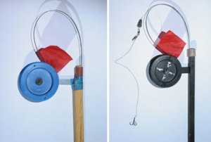 Третий способ — это груз-эксцентрик. Простая катушка для жерлицы во время вращения сбалансирована и именно по этой причине у нее такой легкий ход. Принцип действия данного метода таков: на ручку катушки закрепляют небольшой грузик, который будет служить эксцентриком и не давать катушке свободно и равномерно вращаться, останавливая катушку в положении рукояткой вниз. Все эти способы здорово помогают избежать перехлестов по причине излишней инерционности катушки.
