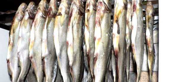 - По истечение этого времени тушки рыбы достаются и подвешиваются за хвосты, чтобы стек лишний маринад. После этого, рыбу определяют в то место, где она будет находиться в подвешенном состоянии, где она подсушится и подвялится.