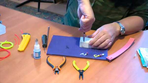 ΠΠ°ΡΠ΅ΠΌ Π½Π°ΠΌ ΠΏΠΎΠ½Π°Π΄ΠΎΠ±ΠΈΡΡΡ ΠΏΡΠΎΠ²ΠΎΠ»ΠΎΠΊΠ° ΡΠΎΠ»ΡΠΈΠ½ΠΎΠΉ 0,2 ΠΌΠΌ. ΠΡΠΊΡΡΡΠ²Π°Π΅ΠΌ ΠΊΡΡΠΎΠΊ ΠΏΡΠΎΠ²ΠΎΠ»ΠΎΠΊΠΈ ΠΈ Π½Π°ΡΠ°ΠΆΠΈΠ²Π°Π΅ΠΌ Π½Π° Π½Π΅Π΅ Π΄Π²Π° ΡΠ»Π΅ΠΌΠ΅Π½ΡΠ°. ΠΠ΅ΡΠ΅ΠΌ ΠΊΡΡΠ³Π»ΠΎΠ³ΡΠ±ΡΡ ΠΈ Π΄Π΅Π»Π°Π΅ΠΌ Π½Π° ΠΊΠΎΠ½ΡΠ΅ ΠΏΠ΅ΡΠ΅Π»ΡΠΊΡ ΠΈ ΠΎΠ΄Π΅Π²Π°Π΅ΠΌ Π΅Π΅ Π½Π° ΠΊΠΎΠ»ΡΡΠΎ ΡΡΠΎΠΉΠ½ΠΈΠΊΠ°. ΠΠΎΠ»ΡΡΠΈΡΡΡ Π²ΠΎΡ ΡΠ°ΠΊ:
