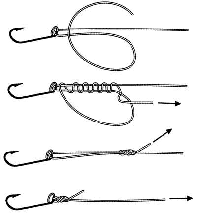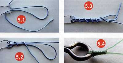 - оставив небольшую петлю, конец обернуть 8 раз около снасти;