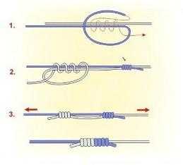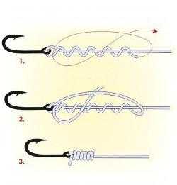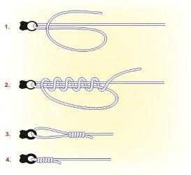 - при формировании третьей петли конец лески обернуть 3 раза вокруг петель;