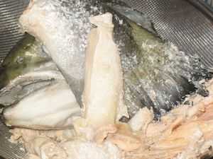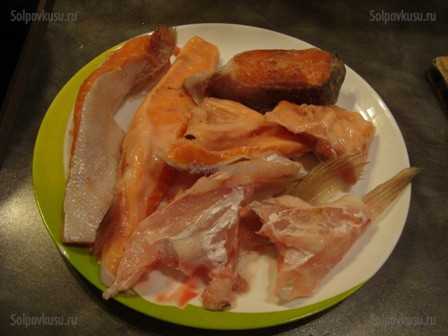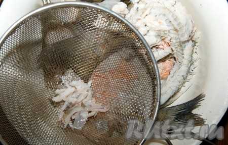 2. Вынимаем шумовкой рыбу, отделяем мясо от костей и головы.
