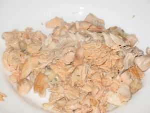 - Если в рыбьей голове у вас есть мясо (как в моем случае), то его очищаем от костей и кладем в тарелки с ухой.