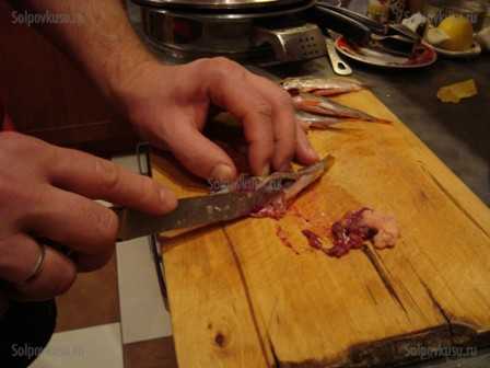 Чистить ее не будем, только вспорем брюшки и вынем кишки.