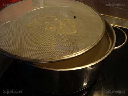 Бульон процеживаем, сито должно быть мелким, если сита нет, то сойдет дуршлаг или марля. Я процеживаю два раза.
