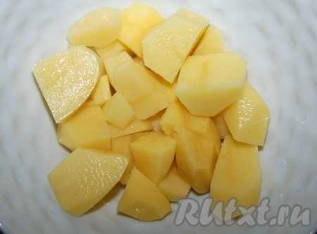 Картофель почистить и отправить в кастрюлю с бульоном.
