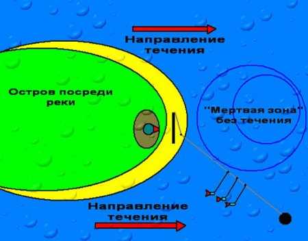 Π’Π°ΠΊΠΆΠ΅ Π½Π΅ΠΏΠ»ΠΎΡ ΠΎ ΡΠ΅Π±Ρ Π·Π°ΡΠ΅ΠΊΠΎΠΌΠ΅Π½Π΄ΠΎΠ²Π°Π»ΠΈ ΠΎΡΡΡΠΎΠ²Π° ΠΏΠΎΡΡΠ΅Π΄ΠΈ ΡΠ΅ΠΊΠΈ. ΠΠ΄Π΅ΡΡ ΡΠ°ΠΌΡΠΌΠΈ ΡΡΠ±Π½ΡΠΌΠΈ ΠΌΠ΅ΡΡΠ°ΠΌΠΈ ΡΠ²Π»ΡΡΡΡΡ ΠΎΠ±ΡΠ°ΡΠΊΠΈ ΠΈ Β«ΠΌΠ΅ΡΡΠ²ΡΠ΅ Π·ΠΎΠ½ΡΒ» Π±Π΅Π· ΡΠ΅ΡΠ΅Π½ΠΈΡ Π·Π° ΠΎΡΡΡΠΎΠ²Π°ΠΌΠΈ. Π§Π°ΡΠ΅ Π²ΡΠ΅Π³ΠΎ ΡΠ΅ΡΠ½ΡΠ΅ ΠΎΡΡΡΠΎΠ²Π° ΡΡ ΠΎΠ΄ΡΡ Π² Π²ΠΎΠ΄Ρ ΠΏΠ»Π°Π²Π½ΠΎ, ΡΠ΅ΡΠ΅Π½ΠΈΠ΅ ΡΠ°Π·ΠΌΡΠ²Π°Π΅Ρ ΠΈΡ , ΠΎΠ±ΡΠ°Π·ΡΡ ΠΎΠ±ΡΠΈΡΠ½ΡΠ΅ ΠΏΠ»ΠΎΡΠ°Π΄ΠΈ ΠΏΠΎΡΡΠΈ ΡΡΠΎΡΡΠ΅ΠΉ Π²ΠΎΠ΄Ρ Π·Π° Π½ΠΈΠΌΠΈ. ΠΠ½ΠΎΠ³Π΄Π° Π² ΡΠ°ΠΊΠΈΡ ΠΌΠ΅ΡΡΠ°Ρ Π½Π° Π΄Π½Π΅ ΠΏΡΠ΅ΠΎΠ±Π»Π°Π΄Π°Π΅Ρ Π³Π°Π»Π΅ΡΠ½ΠΈΠΊ ΠΈΠ»ΠΈ ΠΊΠ°ΠΌΠ½ΠΈ β ΡΡΠΎ ΠΈΠ΄Π΅Π°Π»ΡΠ½ΠΎΠ΅ ΠΌΠ΅ΡΡΠΎ Π΄Π»Ρ ΠΏΠΎΠΈΠΌΠΊΠΈ ΡΡΠΊΠΈ ΠΈ ΡΡΠ΄Π°ΠΊΠ°. ΠΠΎ ΡΡΡΠ°Π½Π°Π²Π»ΠΈΠ²Π°ΡΡ ΡΠ΅Π·ΠΈΠ½ΠΊΡ Π² ΡΠ°ΠΊΠΈΡ ΠΌΠ΅ΡΡΠ°Ρ ΡΠ΅Π»Π΅ΡΠΎΠΎΠ±ΡΠ°Π·Π½Π΅Π΅ Π½Π° Π³ΡΠ°Π½ΠΈΡΠ΅ ΡΠ΅ΡΠ΅Π½ΠΈΡ ΠΈ ΠΎΠ±ΡΠ°ΡΠΊΠΈ, ΠΎΠ±ΡΠ°Π·ΡΡΡΠ΅ΠΉΡΡ Π·Π° ΠΎΡΡΡΠΎΠ²ΠΎΠΌ. ΠΠΏΡΡ ΠΏΠΎΠΊΠ°Π·ΡΠ²Π°Π΅Ρ, ΡΡΠΎ ΠΈΠΌΠ΅Π½Π½ΠΎ ΡΡΠΈ ΠΌΠ΅ΡΡΠ° Ρ ΠΈΡΠ½ΠΈΠΊ ΠΏΠΎΡΠ΅ΡΠ°Π΅Ρ ΡΠ°ΡΠ΅ Π²ΡΠ΅Π³ΠΎ (ΡΠΌ. ΡΠΈΡ.)