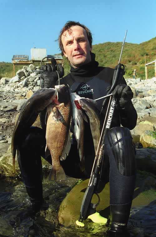 Хороши и пружинные слинги, где в трубе с пружиной и простейшим спусковым механизмом двигается гарпун с наконечником. Гарпун не покидает ствол, и это очень скорострельное оружие идеально подходит для охоты на скорпен, бычков и мелкую камбалу «глосса». В Средиземноморье зимой, когда сарги и другая рыба выходят на мелководье, их тоже можно попытаться добыть с «пружинкой».