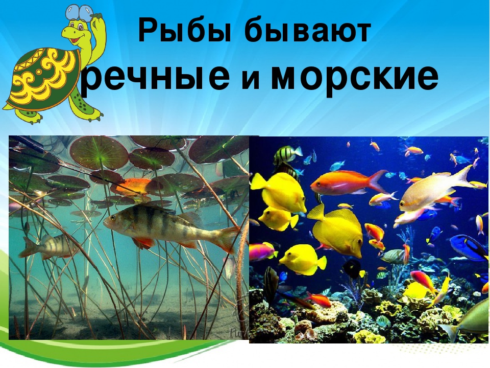 Цель: знакомство с речными и морскими рыбами, средой их обитания, а также особенностями строения.