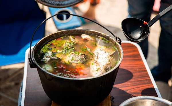 - Готовую уху снимают с костра, накрывают крышкой и настаивают не менее 15 минут закрытой.