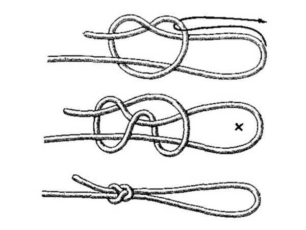 - На начале и в конце лески сделать петлю, которая состоит из двойного или простого узла.