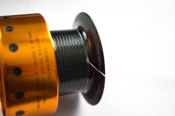 - Узлы при завязке лески на шпулю не должны тянуться;