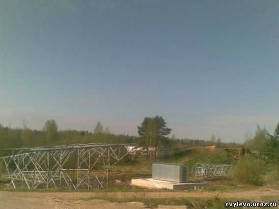 У моста через р.Тихвинка началась сборка частей вышки сотовой связи.