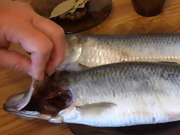 2. Рыбу моем и удаляем жабры. Можете очистить от внутренностей. Так вы ускорите процесс маринования. Складываем её в ёмкость, в которой будем солить.
