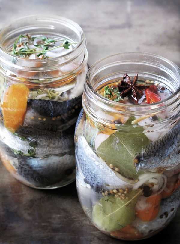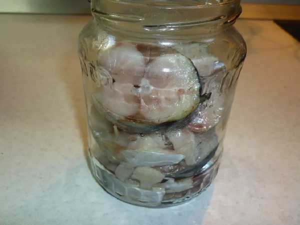 3. Рыбу складываем в банку и заливаем остывшим рассолом. Чтобы запах специй не улетучился, сверху наливаем растительное масло. Оставляем в прохладном месте на сутки.