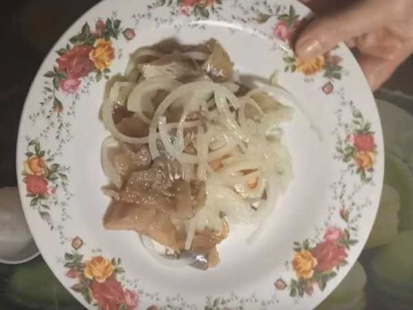 По этому способу получается просто обалденная закуска. Само блюдо готовится очень быстро. Примерно в течении часа, а затем ещё маринуется столько же. Зато потом вы будете уплетать её за обе щеки вместе с луком.