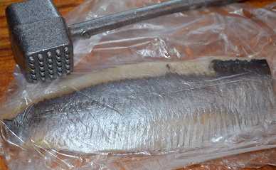 - Селедку очистить, вынуть внутренности, обрезать жабры, удалить кости.