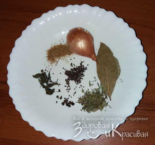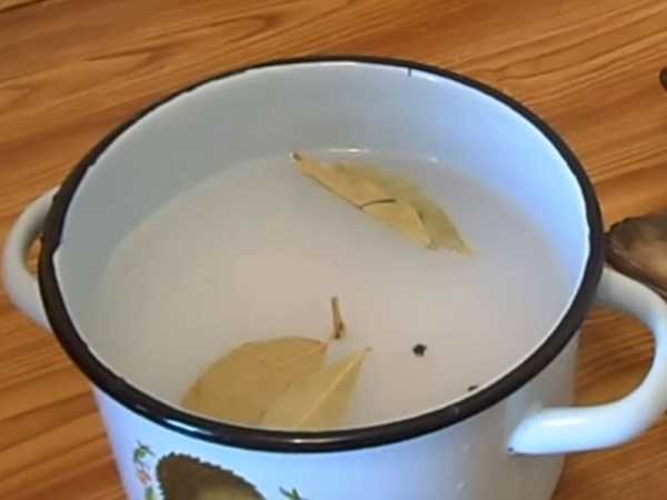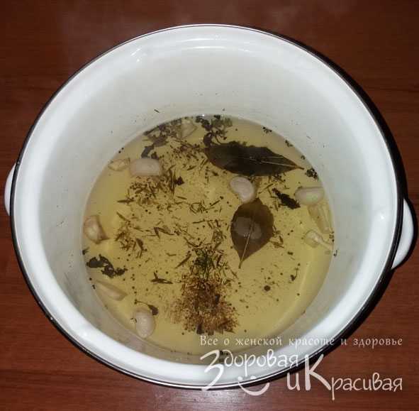 1. Воду кипятим и добавляем соль, сахар и специи. Перемешиваем и остужаем до комнатной температуры.