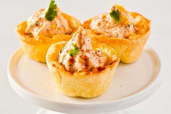 - Выкладываем начинку в готовые корзиночки, украшаем по своему усмотрению.