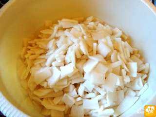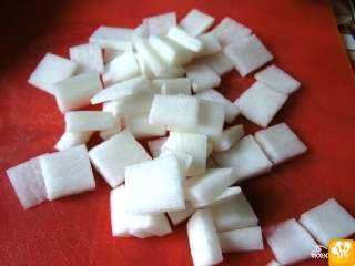 Пересыпаем нарезанный дайкон солью, перемешиваем и ставим под гнет примерно на двое суток.