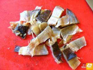 Сушеную камбалу чистим и нарезаем на небольшие кусочки. Если сушеной камбалы у вас нет (хотя ее сейчас можно купить в любом крупном супермаркете), то можете использовать любую другую сушеную рыбу — получится немного иначе, но тоже вкусно.