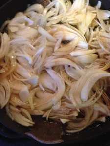 Сверху на рыбу выкладываем нарезанный полукольцами лук (резать кстати лук полукольцами надо не поперек, а вдоль. это нас тоже корейцы научили. говорят, что так вкуснее). У меня было 4 большие луковицы. Но можно было бы и побольше. он уваривается.