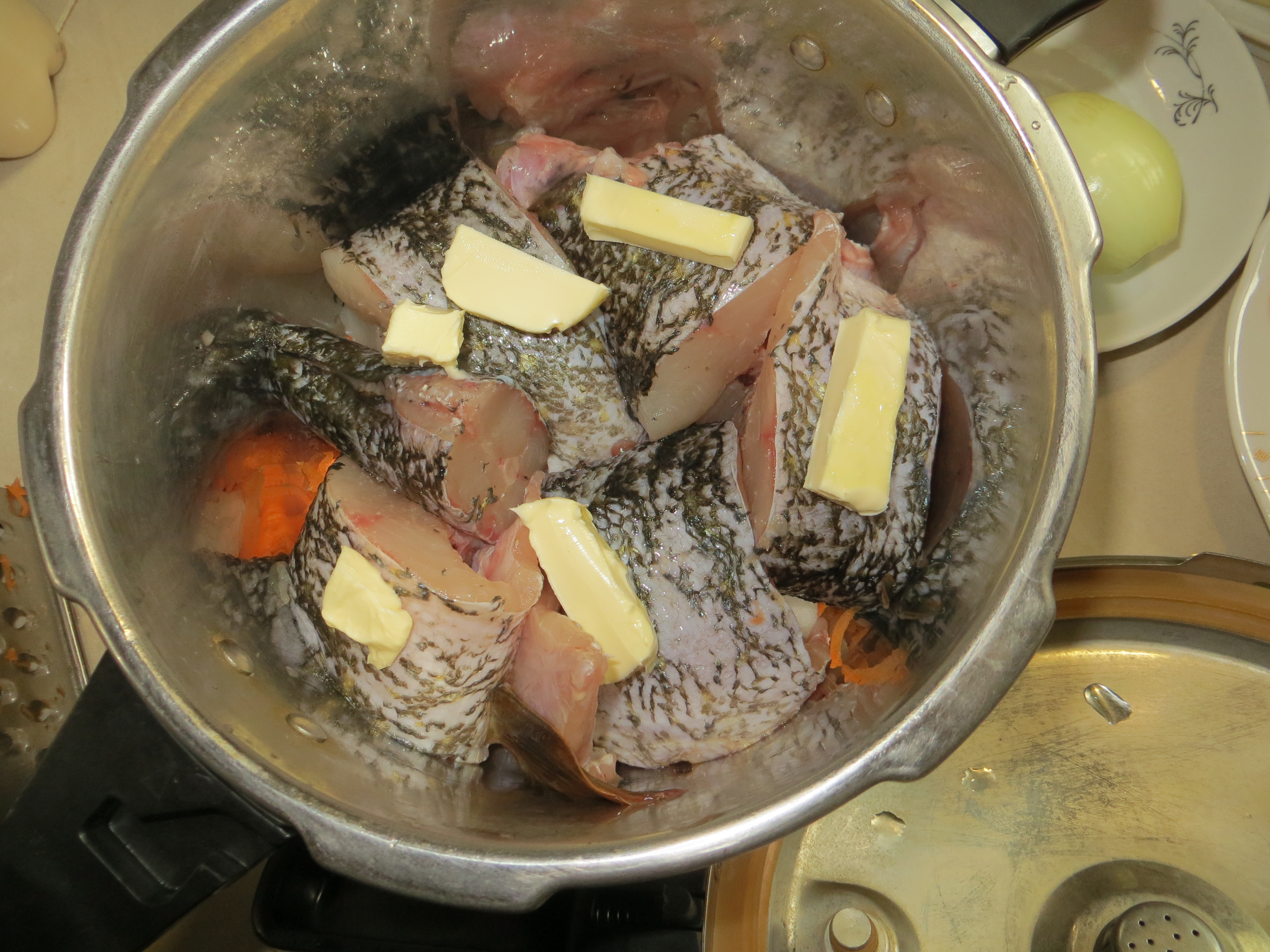 Что касается приготовления рыбного бульона, то он получится гораздо ароматнее и наваристее, если вы добавите целиком очищенную морковку и луковицу. После приготовления бульона овощи нужно выбросить.