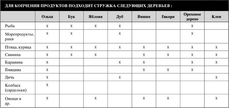 - Сырье, которое используется для поджога коптильни, – древесина, угли.