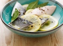 Обжаренная скумбрия с сельдереем и пюре из зеленого лука