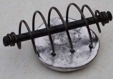 Оснастка по типу соски применяется для донки с кормушкой. Сделать ее можно самостоятельно из оцинкованной сетки для кормушки также свинца и медной проволоки для скрепления и подвешивания грузила с прикреплением болта и гайки.