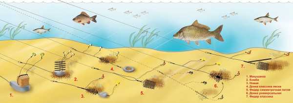 - донки: закидушка, полудонка, резинка, донка с катушкой, фидер;