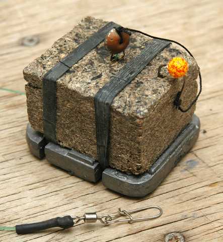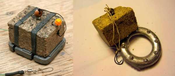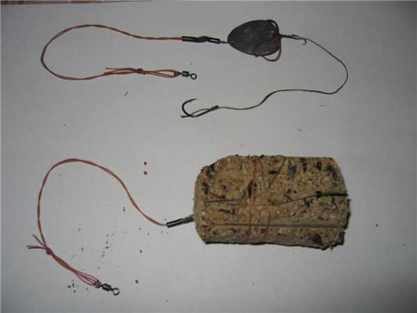 - Снасть комбинированной конструкции, в которую дополнена кормушка, куда ложится прикорм. Такая снасть более всех привлекает карпа.