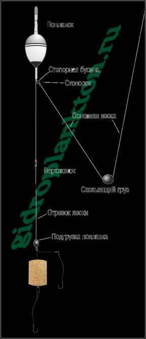Без подгрузки не обойтись, поскольку если ее не установить, после забрасывания попалавок будет уходить в воду вслед за скользящим грузом.