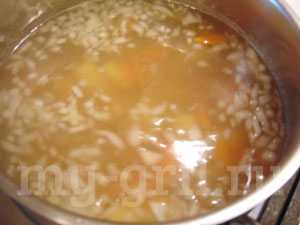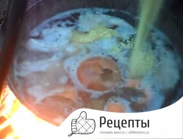 - Следом за ним – пшено. После чего все заливаем водой и ставим на огонь. Пшено предварительно хорошо промываем. Варим до полной готовности картофеля.
