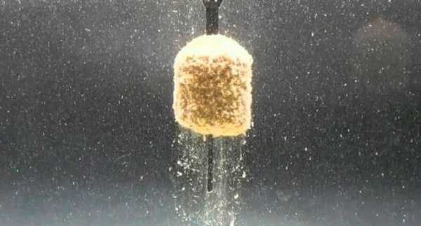 Попадая в воду, составляющие начинают медленно растворяться, создавая огромное облако из мелких частиц, которые очень любит толстолобик. Особенно, это интересно, если посмотреть на это облако сбоку: оно схожее с огромным количеством взвешенных в воде мелких частиц, которые привлекают толстолобика.
