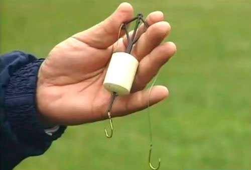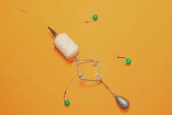 Укажем, что существует еще и другой вариант оснастки, который исключает использование «тремпеля». В этом случае внизу кормушки устанавливает грузило на поводке, а сверху два поводка. Эту оснастку лучше всего использовать, когда ловля происходит на водоеме с чистым дном.